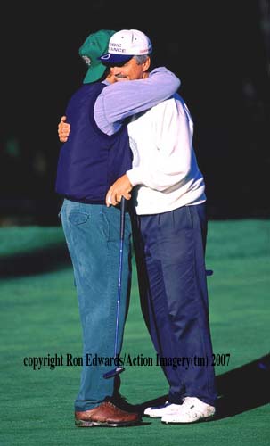 When his partner sinks a long putt, he really appreciates it.