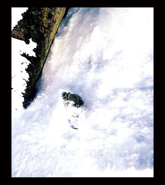 riding a slide down a back country chute